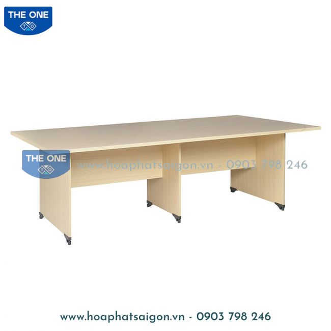 Bàn họp gỗ Melamine mặt hình chữ nhật, bàn có 3 chân.