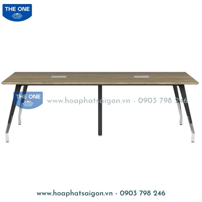 Bàn họp cao cấp mặt gỗ melamine vát cạnh 45 độ hai cạnh dài có 2 nắp ổ điện,