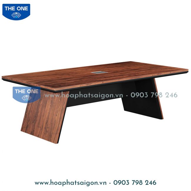 Bàn họp gỗ công nghiệp cao cấp phủ melamine, chân bàn vát nghiêng kết hợp ốp sơn đen. Mặt bàn có 1 nắp hộp điện.