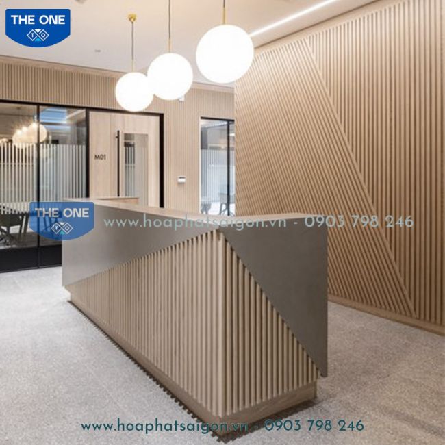 Quầy phối cùng Vách Lam gỗ tạo điểm nhấn ấn tượng cho khu vực Lễ tân.