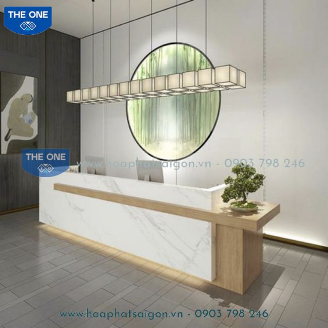Quầy phối cùng Vách Lam gỗ tạo điểm nhấn ấn tượng cho khu vực Lễ tân.