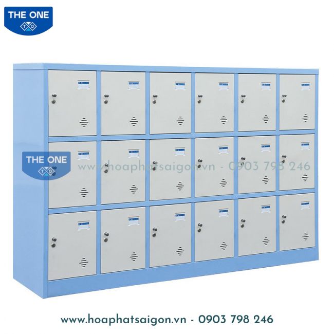 Tủ sắt sơn tĩnh điện 18 khoang cánh mở, kích thước phù hợp cho đối tượng học sinh mẫu giáo, tiểu học.