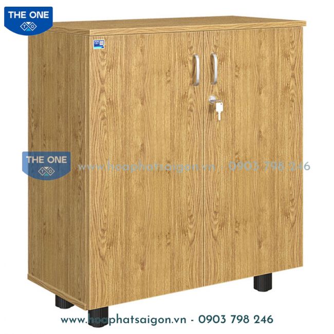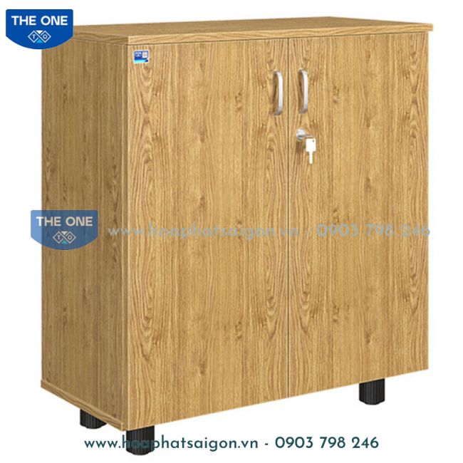 Tủ tài liệu thấp 2 cánh gỗ mở, có hai khoang để file, chất liệu melamine, nóc tủ 17mm, thành tủ 15mm.